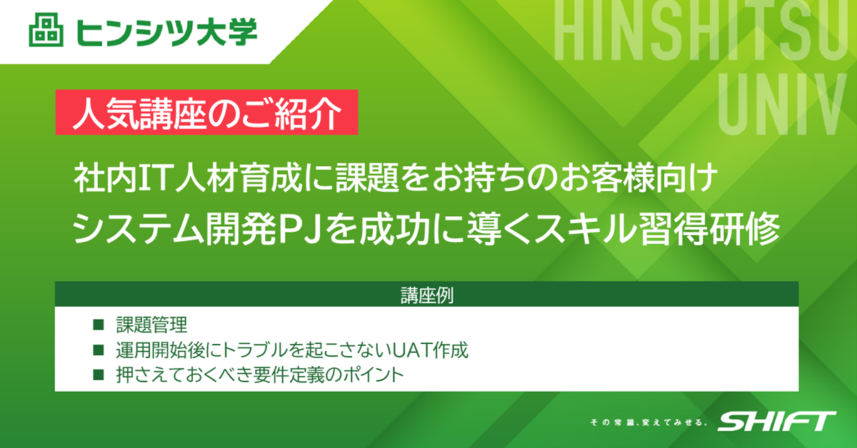 平素より、株式会社SHIFT ヒンシツ大学をご利用いただきまして誠にありがとうございます。