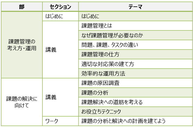 課題管理表があるから行うのではなく、何のために課題管理をしているのか、この課題はプロジェクトにどのように影響するのか、解決するためにどうするのかを理解することでプロジェクト推進の基礎力を育てます。