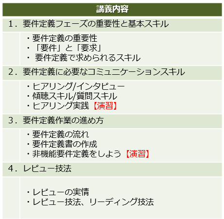 業務要件をシステム要件に落とすために必要な知識を身に付けていただけます。